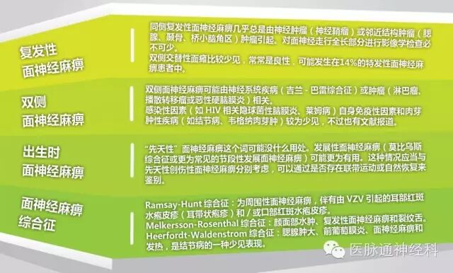 (1)波动性、阶梯性或缓慢进展(超过72 小时)的面神经麻痹;